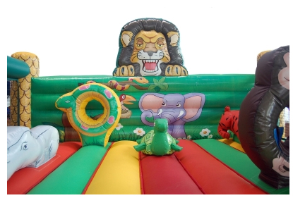 Les enfants partiront à l'aventure dans un safari gonflable en compagnie de leurs amis les animaux de la forêt et du Roi lion.