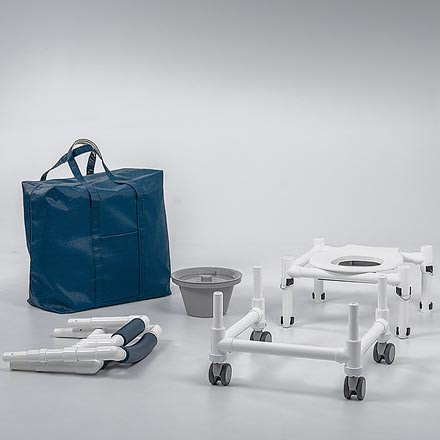 La chaise de douche est facile à monter et à démonter, sans outils pour être transportée confortablement dans un sac de voyage.
