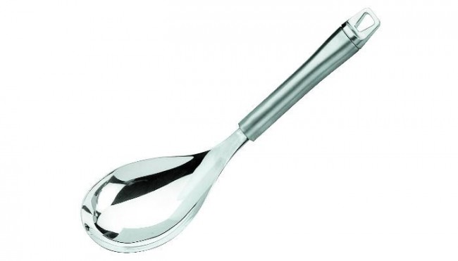 La taille de la cuillère compacte et courte, ainsi que sa forme, en font une cuillère idéale pour servir le riz.