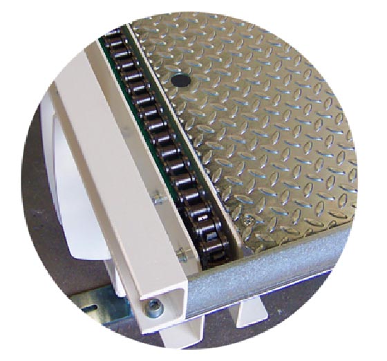 Ce sont des chaînes porteuses guidées par profil antifriction sous le brin actif.