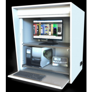 - Possède deux tablettes fixes réglables en hauteur : une pour l'écran et l'autre pour une étiqueteuse et/ou un indicateur de pesée avec la possibilité de rendre les tablettes extractibles (cf. Option GM 501) ;
