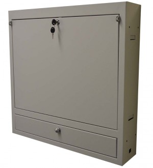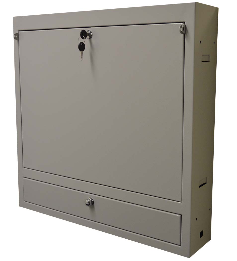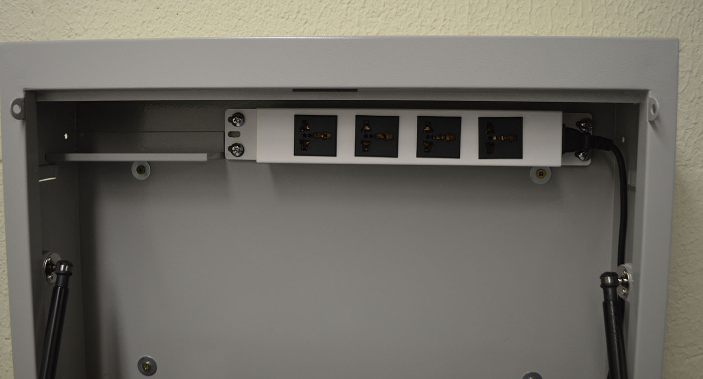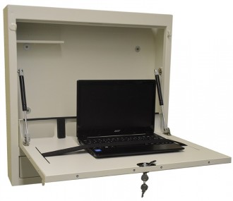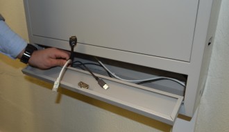 Ranger un PC avec ses câbles dans une rangement mural sécurisé.