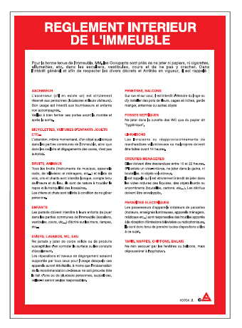 Réf. TC : 118646272Consignes règlement intérieur d'immeuble 1 PVC oui