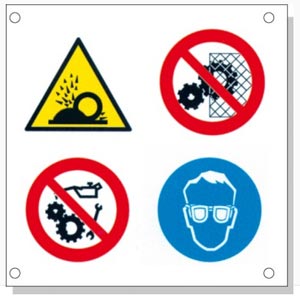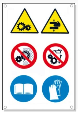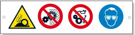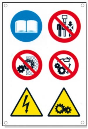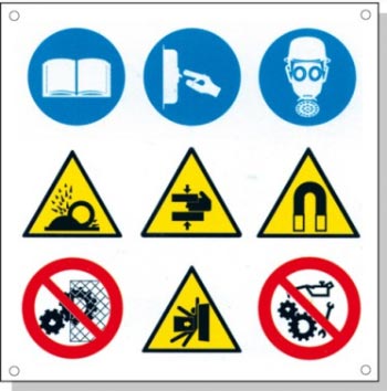 Ce sont des panneaux signalétiques multi-symboles pour divers risques résiduels.