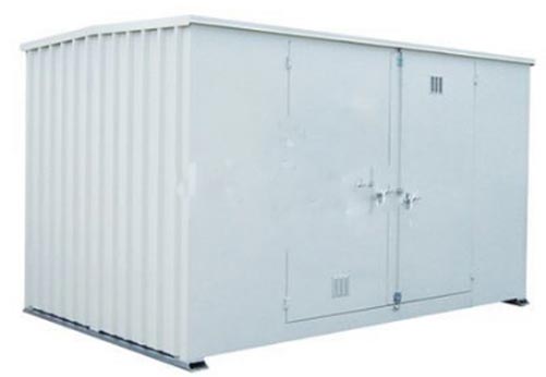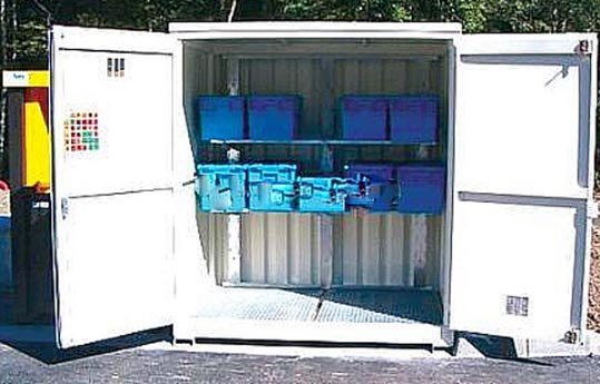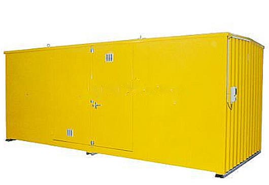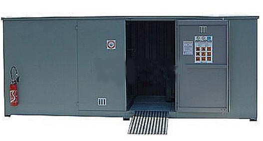 Container incombustibles (structure R15, matériaux classe A2s1D0 ,toiture et couverture classe BROOF t3) sans étagère, rétention compartimentée ,accès sécurisé sur le grand côté avec rampe .Dispositif d"évacuation naturelle des fumées.4anneaux de levage pour la mise en place