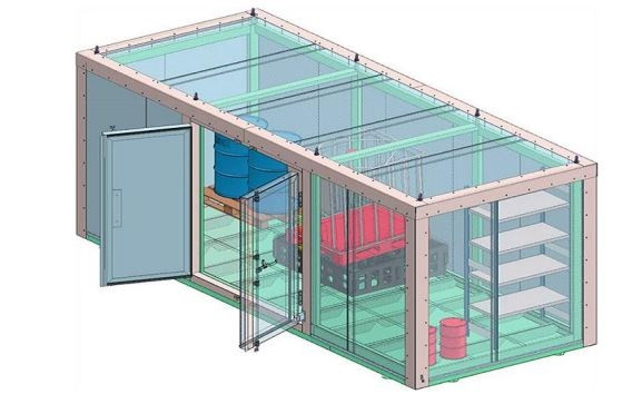 - Bungalow étanche aux éventuelles fuites de produits (bac de rétention) et aux nuisibles.