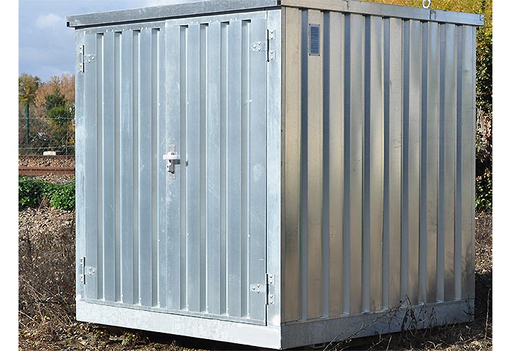 Bungalow en acier galvanisé avec rétention intégrée adapté pour le stockage des produits dangereux (DMS, produits chimiques et tous types de produits polluants).