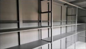 - Intérieur : bac de rétention étanches en PHED (polyéthylène) avec piquage de vidange, poignées coquilles sur les petits côtés (bacs 90 litres (800 x 600 x 220) / bacs 175 litres (800 x 600 x 425) / bacs 600 litres (1200 x 1000 x 765)) ; étagères à rouleaux pour faciliter la manutention des bacs