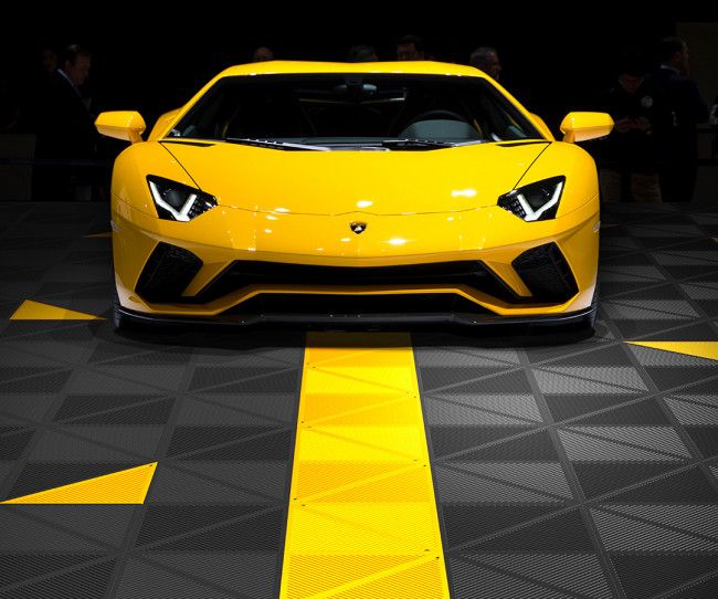 Personnalisez votre sol de garage sans outils spéciaux et sans expérience ni adhésif. Contrairement à la peinture époxy ou à la peinture de sol, aucun travail de préparation n’est nécessaire et surtout : pas d’arrêt de votre activité = pas de perte de chiffre d’affaire.