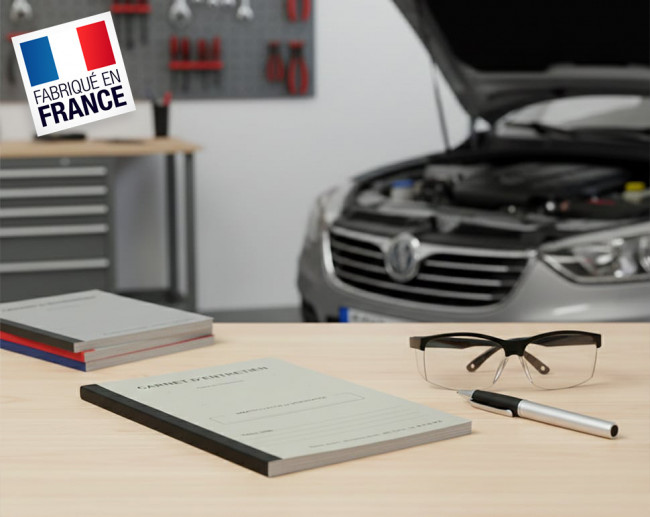 Avec son format A5 (140 × 200 mm), il permet de centraliser toutes les informations d’entretien dans un support compact, facilement accessible à bord du véhicule.