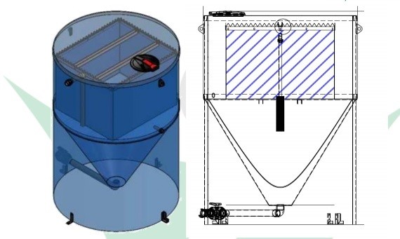 Grâce aux lamelles présentent dans la cuve, la surface de décantation utile se multiplie.