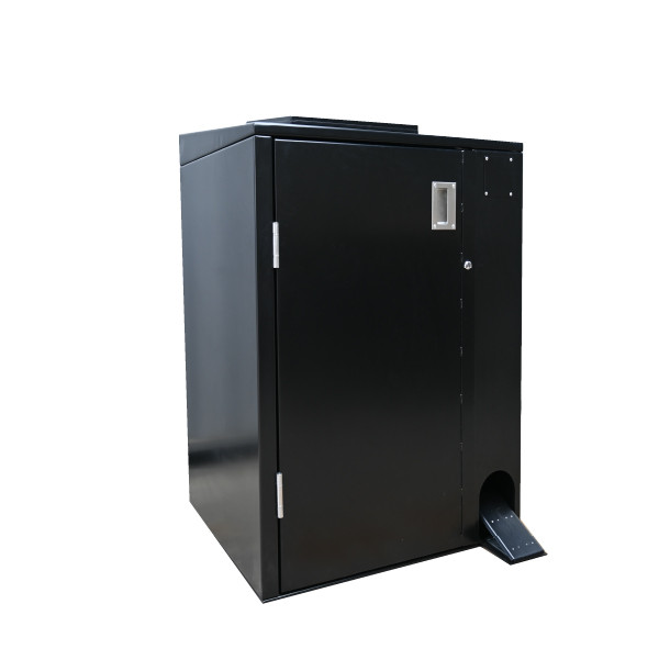 Notre abri-bac est équipé d'une pédale astucieusement positionnée au sol, permettant aux cyclistes d'ouvrir le conteneur en toute simplicité. Il leur suffit de rouler sur la pédale pour déclencher l'ouverture de l'abri-bac biodéchets.