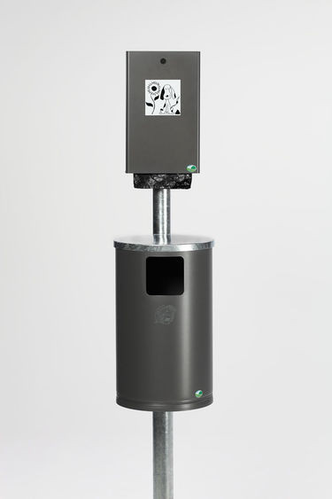 Composée d’un distributeur de sac pour déjections canines, et un collecteur de déchets d’une capacité d’env.30 L.