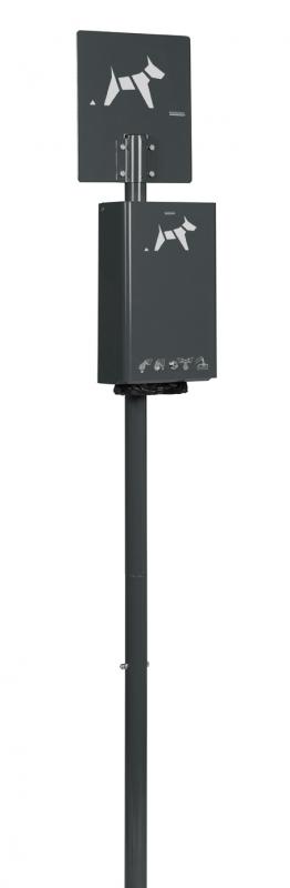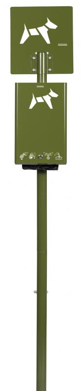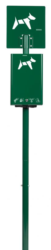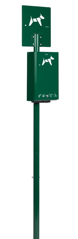Ce kit est composé d'un poteau à sceller, d'une plaque signalétique et d'un distributeur de sacs liasses.