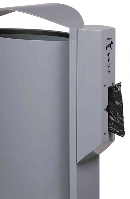 corbeille sur pied 60L avec son distributeur sac hygiène canine pour garder vos espaces propres.