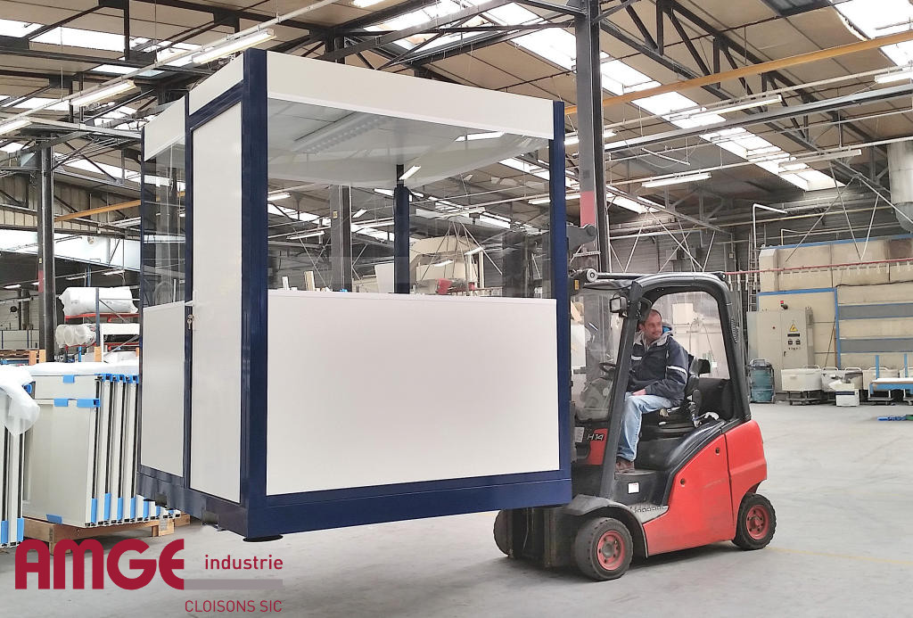 Nous aurions besoin d"un bureau d"atelier de 2 x 2 m avec un guichet et une porte d"accès face opposée. Ce bureau serait accolé au bardage du bâtiment côté guichet pour permettre aux chauffeurs de donner les documents de transport sans entrer à l"intérieur du hall de stockage.