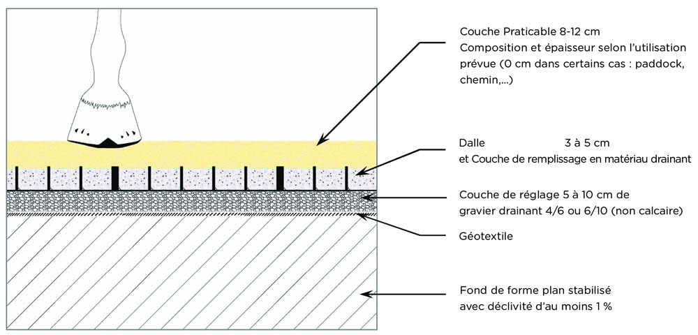 Prévision 30cm couché de structure 30cm à bec couché réglage 8cm et sable mélange équestre finition 10cm. J aimerais avoir un devis pour proposer au client des plaques de stabilisation pour ses carrières.