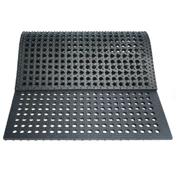Le caoutchouc perforé de la dalle assure une surface non glissante et sans danger pour les animaux, contribuant à prévenir les blessures.