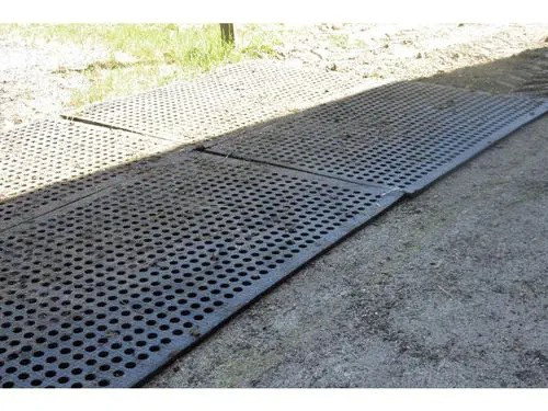 Spécialement élaborée pour les terrains difficiles, la dalle s'ajuste aux surfaces inégales, assurant une stabilité même dans les conditions les plus boueuses.