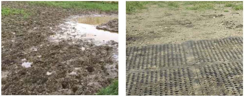 Elle offre une surface stable et sûre, réduisant les risques dans les zones boueuses et améliorant le confort des chevaux.