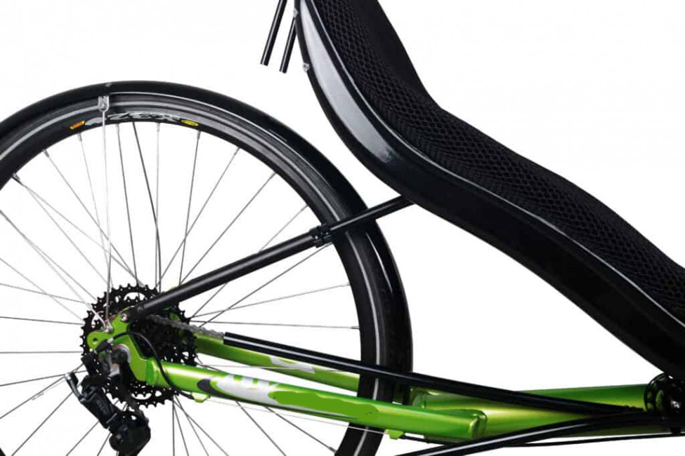 Vélo couché tricycle destiné à être utilisé pendant les voyages et les randonnées.