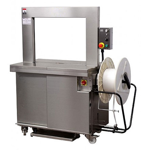 La cercleuse Inox automatique est spécialement fabriquée pour effectuer des opérations de cerclage simple de colis ou plusieurs autres types de produits dans le secteur agroalimentaire.