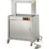 Notre cercleuse automatique inox est une machine particulièrement compacte grâce à la dimension réduite de l'arche et l'intégration de la bobine de feuillard dans la machine.