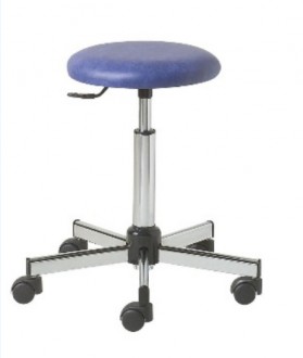 Ce tabouret médical à hauteur variable équipé d'une assise ronde de 33 cm de diamètre.