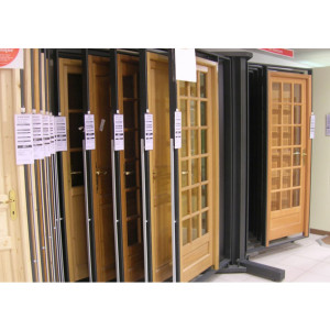 nous recherchons pour un de nos client un présentoir pour portes d"entrées en bois et PVC + 1 présentoir a carrelage idéalement à tiroir.