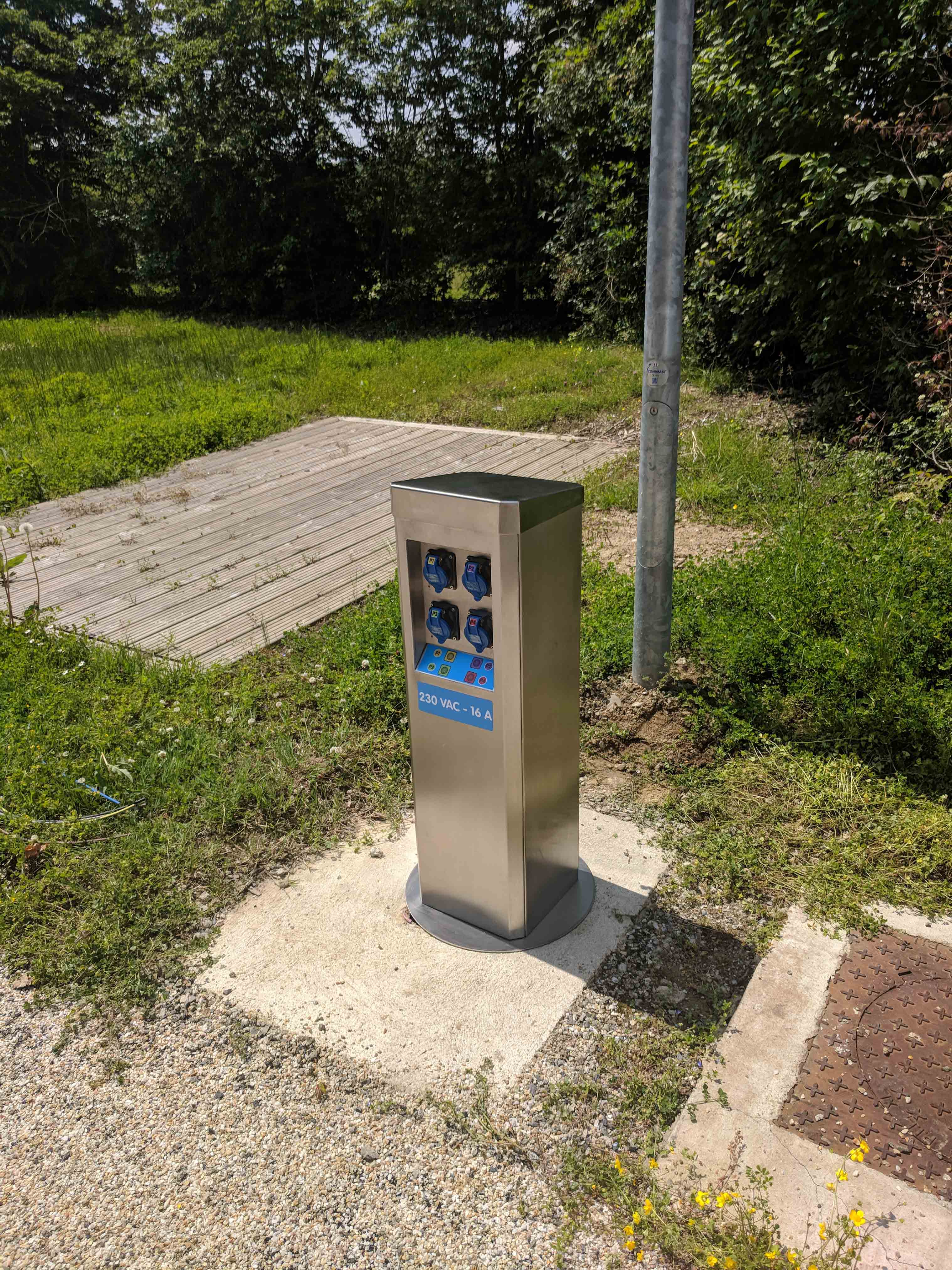 24/08/2024Borne pour eau et électricité avec jetons ou cartes bleues. Merci.