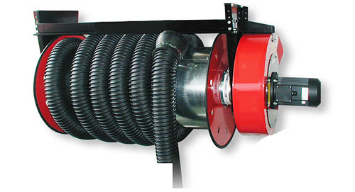 2 Bras d"aspiration pour gaz d’échappement sur enrouleur.