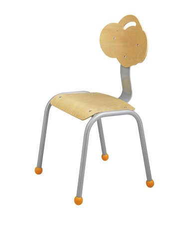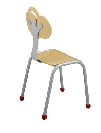 La lame support de dossier en tôle de 4mm d'épaisseur présente une forme à la fois ergonomique et décorative, parfaitement adaptée à la morphologie des jeunes enfants.