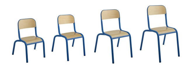 Cette chaise école maternelle propose quatre hauteurs d'assise soigneusement étudiées : 260, 310, 350 et 380 mm.