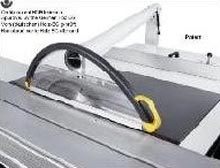 - Le flanc gauche, réalisé en matériel transparent, permet à l'opérateur de voir la lame et la pièce en usinage.