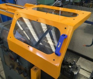 Le protecteur est installé sur la machine-outil. Il respecte l'ergonomie du poste de travail et le confort de l'opérateur. L'écran de protection protège de toute projection (copeaux, rupture d'outil, etc).