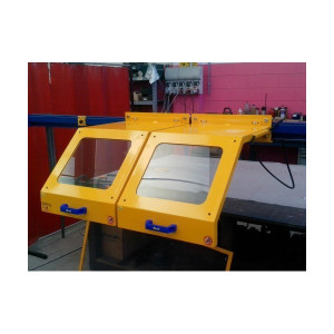 - Double capot de protection constitué d'un cadre en acier rempli de verre de sécurité