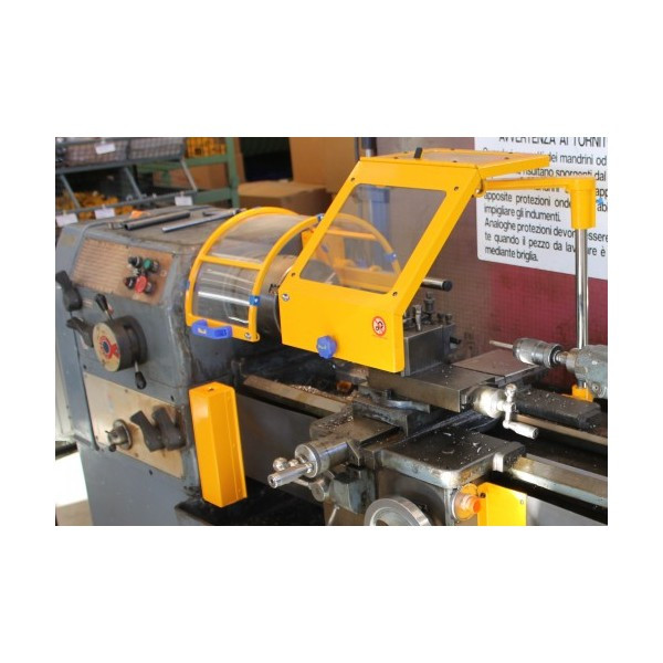 - Protection pour mandrin de tour avec écran en polycarbonate, cadre en acier et micro-interrupteur de sécurité