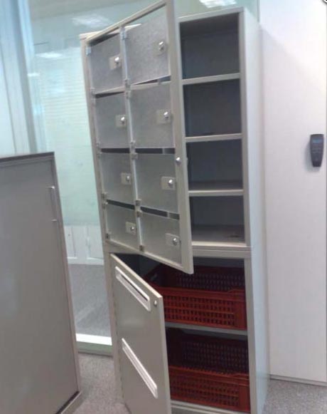 04/11/2019Meuble métallique pour 41 résidents et 1 casier pub, avec support fixé au sol.