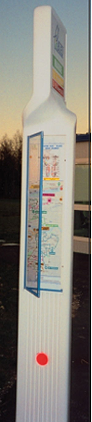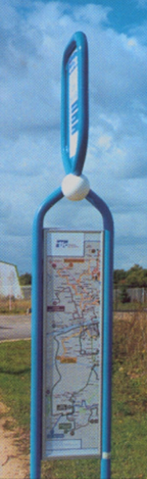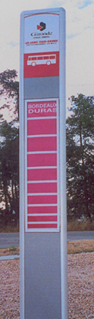 Bonjour, je recherche, pour la commune de Courtisols, un poteau d"arrêt de bus sur lequel nous pourrions accrocher le nom de l"arrêt et les horaires. Auriez vous ce genre de fourniture à me proposer ?
