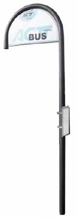 Le poteau d'arrêt bus permet de signaler un arrêt et indique les lignes de bus et les directions desservies.
