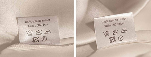- Taie et coutures : 100% soie de mûrier d'élevage