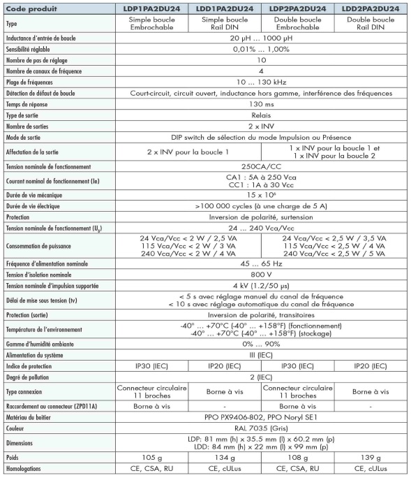- Tension nominale de fonctionnement de 24 à 240 Vca/Vec pour une souplesse d'exploitation totale.