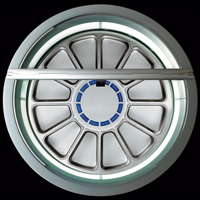 Attention aux détails : chaque élément de cette vitrine est pensé pour offrir un niveau supérieur de finition. Le mouvement rotatif des bacs, pouvant se faire dans le sens des aiguilles d'une montre ou inversement, garantit l'ergonomie et le bien-être de l'opérateur