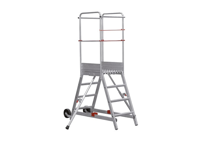 C'est une plateforme avec marches en aluminium striés antidérapant avec plinthe pour plus de sécurité.