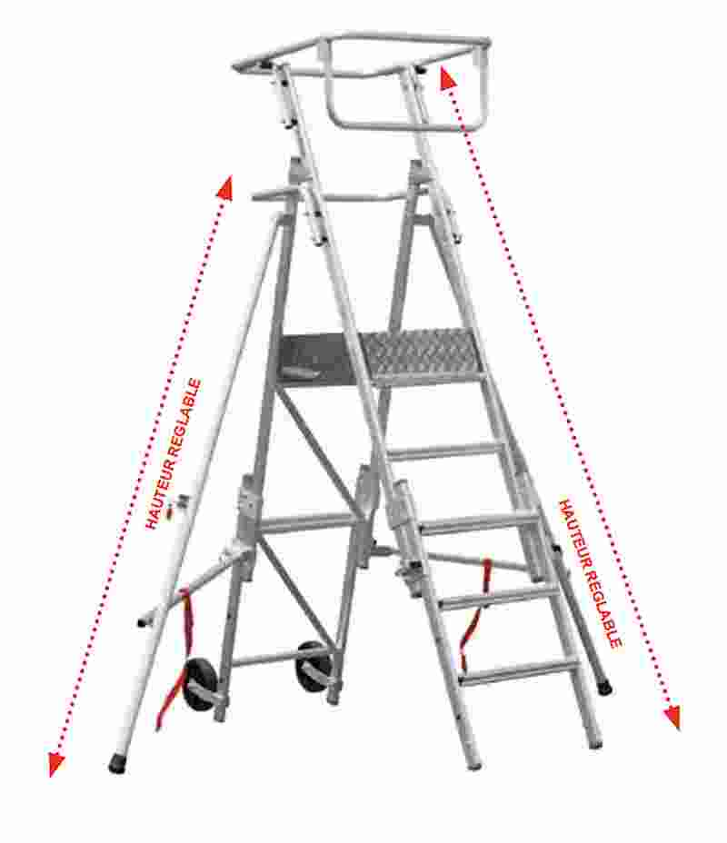 Cette plate-forme roulante repliable est utilisée dans les travaux ponctuels sur chantier ou dans l’industrie, électricité, plâtrerie, plomberie...