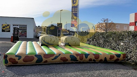 est un terrain gonflable où des candidats « gladiateurs » s’affrontent en face à face.