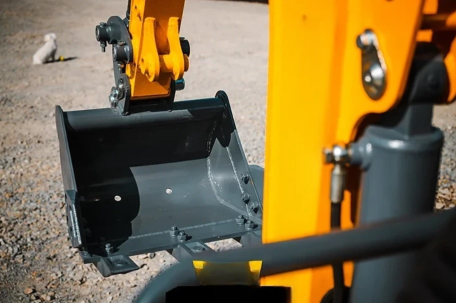 La machine est livrée avec un godet de 380 mm d'une capacité de 0,025 m3, offrant ainsi une solution clé en main pour vos travaux.