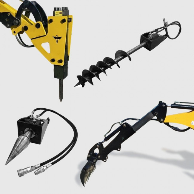Creuser, niveler, décaisser, déraciner, démolir, déplacer de lourdes charges, forer, fendre du bois, décompacter un sol, décavaillonner, etc... sont des applications parfaitement réalisables avec cet outil.