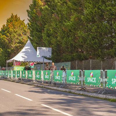 Bâche publicitaire pour barrière Vauban - Impression numérique personnalisée R/V - Polyester 210 gr / B1 - Format : 1,80 m x 0,83 m