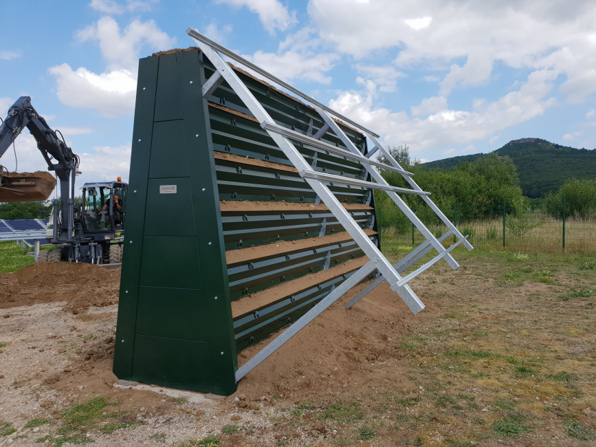 Longévité : Ce mur est constitué d'acier galvanisé (2% du volume, le reste est de la terre végétale NF) à durée de vie illimitée.